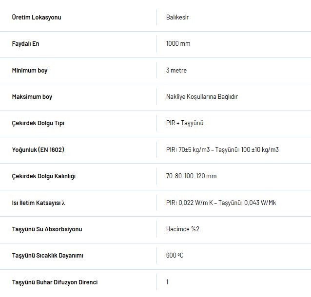 Kolay monte edilebilen, üstün ısı performansı ve yangın dayanımına sahip 3 hadveli çatı panelidir.